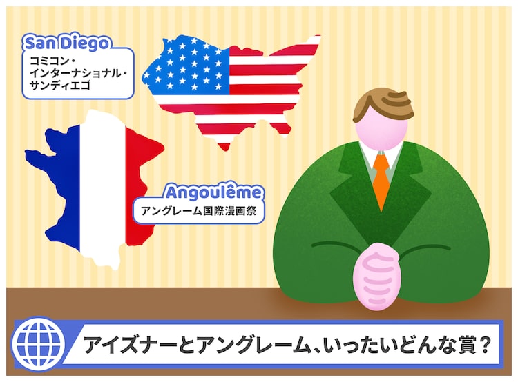 こうしてあらためて見てみると、日本にはたくさんの種類のマンガ賞が存在し、実は海外にも数多くのマンガ賞が存在しているのです。今回はその中でも、その年の優秀作品を決める賞として日本でもしばしば話題にあがり、現在世界で最も権威があるとされるアメリカのアイズナー賞とフランスのアングレーム国際漫画祭賞について、その成り立ちから簡単に解説しようと思います。