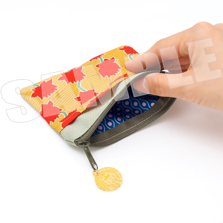 ポケット付きのコインケースは、ちりめん風の生地に宗師の衣装の柄をプリント。内側の生地にも、衣装の柄があしらわれている。ファスナーの引き手には、ほほ笑む宗師のチャームが付属。蛇腹式の御朱印帳は24折で、表面、裏面ともに宗師の衣装の柄がふんだんに用いられた。