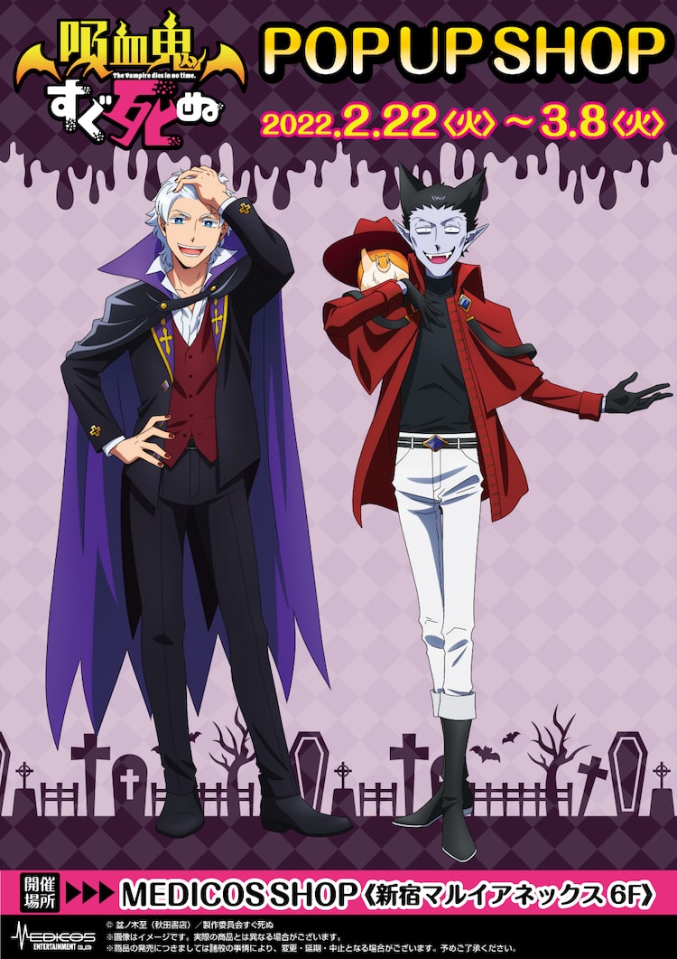 盆ノ木至原作によるTVアニメ「吸血鬼すぐ死ぬ」のポップアップショップが、2月22日から3月8日までの期間、東京・新宿マルイアネックス6階のMEDICOS SHOPに登場する。