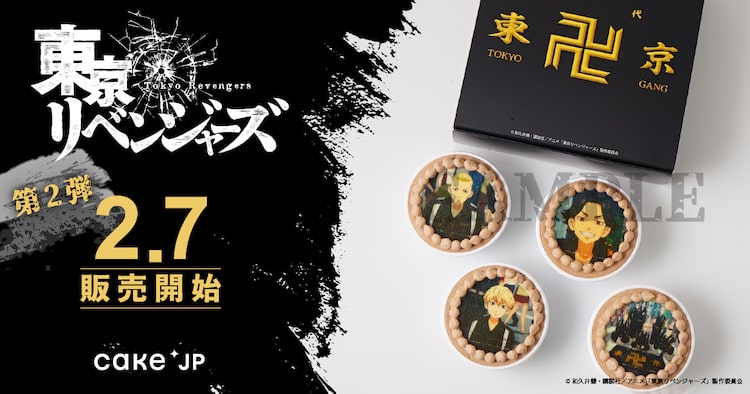 ケーキ専門通販サイト・Cake.jpのコラボ第2弾となる同アイテム。東京卍曾の創設メンバーである佐野万次郎、龍宮寺堅、場地圭介らのイラストがプリントされており、漆黒のパッケージには「東京卍曾」の旗が描かれた。またノベルティとしてキャラクターの缶バッジ全7種から1個が付属する。価格は税込3300円。