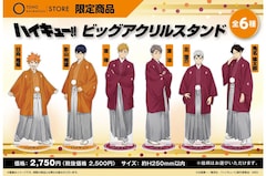「ビッグアクリルスタンド」は日向翔陽、影山飛雄、宮侑、宮治、北信介、角名倫太郎のものを用意。2021年1月に開催された「ハイキュー!! TO THE TOP」の配信イベント「新春!稲荷崎高校スペシャルチームミーティング~烏野もまだまだ気分は松の内~」のため描き下ろされた和装のイラストを使用している。サイズは20cm超で、価格は税込2750円。発送時期は4月上旬予定となっている。
