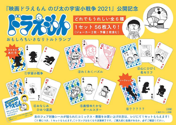 3月4日に「映画ドラえもん のび太の宇宙小戦争 2021」が公開されることを記念し、明日2月19日から全国の書店でミニトランプがもらえる「ドラえもん」フェアが実施される。