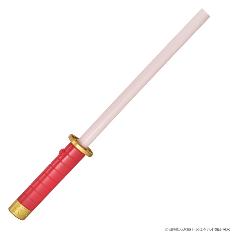 臼井儀人原作によるアニメ「クレヨンしんちゃん」でぶりぶりざえもんが持っている刀のような千歳飴を再現したアイテム「たぶん1/1ぶりぶりざえもん刀」が、7月にバンダイより発売される。