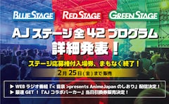 パブリックデイが3月26日・27日に東京ビッグサイトで、ビジネスデイが3月28日・29日にオンラインで開催される「AnimeJapan 2022」。パブリックデイではRED STAGE、GREEN STAGE、BLUE STAGEという3つのステージに分かれて、「鬼滅の刃」「呪術廻戦」「ジョジョの奇妙な冒険 ストーンオーシャン」「その着せ替え人形は恋をする」「ブラック★★ロックシューター DAWN FALL」「SPY×FAMILY」といった作品のイベントが実施される。今回の発表では一部プログラムの追加出演者や、プログラム名が明かされた。詳細は記事末のリストに記載している。