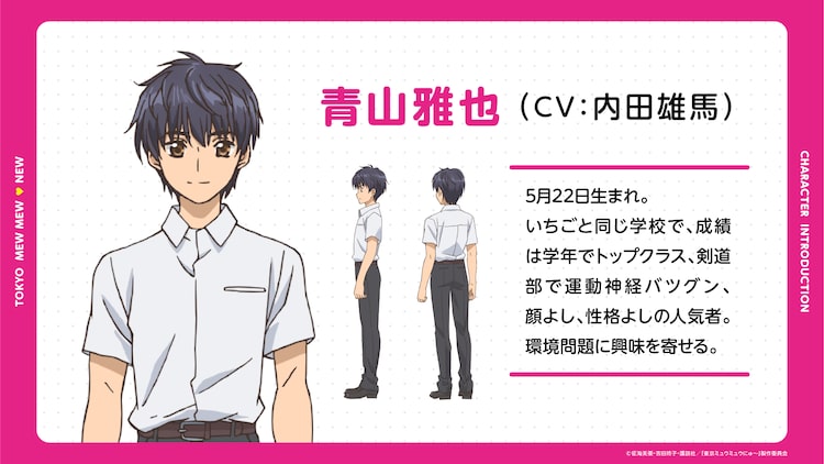 青山雅也(CV:内田雄馬)。いちごと同じ学校で、成績は学年でトップクラス、剣道部で運動神経バツグン、顔よし、性格よしの人気者。環境問題に興味を寄せる。 (c)征海美亜・吉田玲子・講談社/「東京ミュウミュウにゅ~」製作委員会