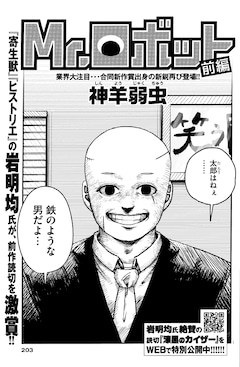 前作「漆黒のカイザー」が「寄生獣」の岩明均から称賛を受けた神羊。今号に登場した「Mr.ロボット」では冷静沈着で血も涙もない殺し屋の太郎を主人公に、彼の秘密が描かれていく。なお「漆黒のカイザー」はビッグコミック系列の公式サイト・ビッグコミックブロスで無料公開中。気になる人はこちらもチェックしてみては。