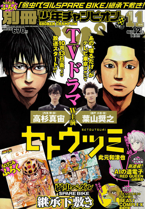 「セトウツミ」は関西の男子高校生2人組・瀬戸小吉と内海想が、放課後に河原で他愛もない会話を続ける姿を描くコメディ。今号では“衝撃展開”と銘打たれ、2本立てで掲載されている。また明日10月13日24時52分より、テレビドラマ「セトウツミ」がテレビ東京ほかにてスタート。内海役は高杉真宙、瀬戸役は葉山奨之が演じる。