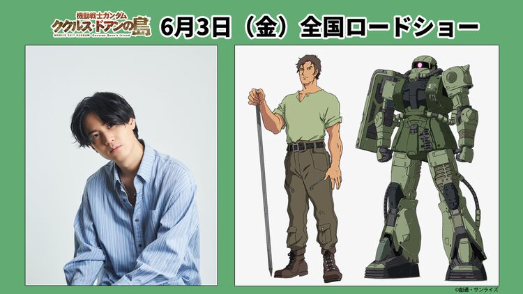 劇場アニメ「機動戦士ガンダム ククルス・ドアンの島」に登場するククルス・ドアン役に武内駿輔が決定。併せてククルス・ドアン、ドアン専用ザク、RX-78-02ガンダムの設定画も公開された。