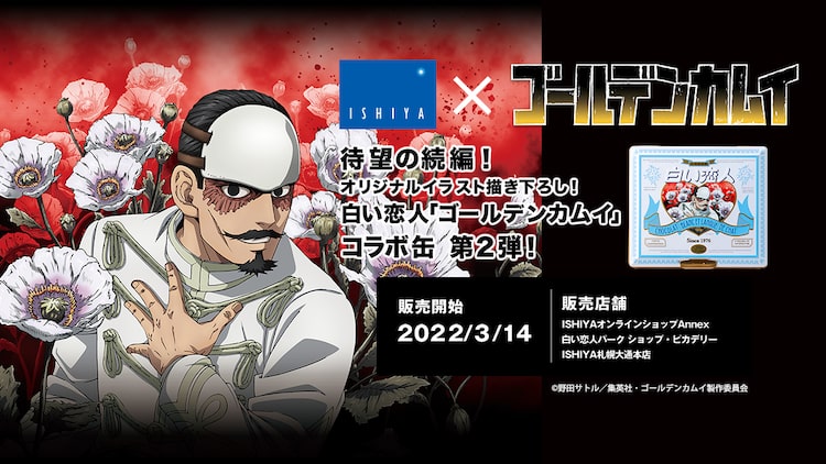 第1弾では白石由竹デザインが制作された「白い恋人」とのコラボレート。第2弾のパッケージには鶴見中尉の描き下ろしイラストがデザインされた。価格は税込3780円。ISHIYAオンラインショップAnnex、北海道の白い恋人パークショップ・ピカデリー、ISHIYA札幌大通本店にて販売される。