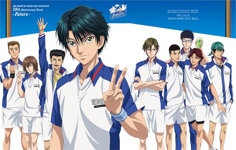 「テニプリ 20th Anniversary Event -Future-」は2021年10月10日、東京・TOKYO DOME CITY HALLにて開催されたイベント。青春学園中等部レギュラーメンバーのキャストをはじめとする声優陣が集合し、トークやコント、朗読、ライブなど盛りだくさんな内容で実施された。パッケージにはイベント本編のほか、高橋広樹、津田健次郎、川本成、小野坂昌也、喜安浩平らキャップと瓶の声優による後夜祭の模様や、皆川純子、置鮎龍太郎、近藤孝行、甲斐田ゆきら青酢の声優による打ち上げ座談会などが収録される。なおキャップと瓶の後夜祭はイベント終演後にU-NEXTで配信されたものの編集版。青酢の打ち上げ座談会は撮り下ろしの特典となる。