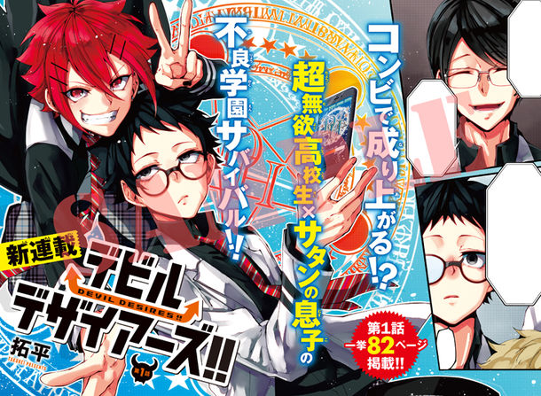 「デビルデザイアーズ!!」は不良だらけの私立亜久間高等学園を舞台に、悪魔と人間のコンビを描く学園バトルもの。生徒全員が悪魔と仮契約を結び3年間を過ごすというルールの中で、何事にも興味がない超無欲な男子・神瀬達哉とサタンの息子が出会ったことから物語は動き出す。