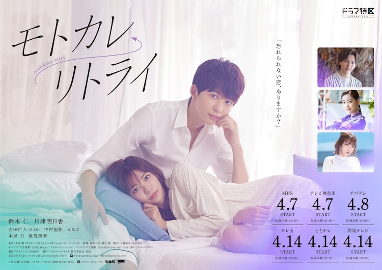 「モトカレ←リトライ」は初恋のトラウマを引きずっている女子大学生・蜜が、引越し先に住んでいたモトカレ・楓と出会うところから始まる“再燃系”ラブストーリー。4月7日よりMBSほか各局で放送される。