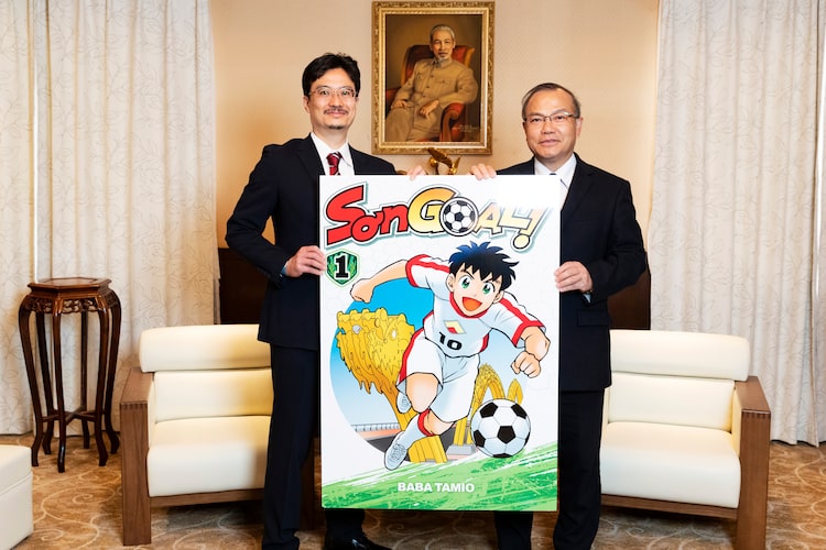 プロジェクトの責任者であるKADOKAWAの青柳昌行CPOは、ヴー・ホン・ナム駐日ベトナム社会主義共和国特命全権大使を表敬訪問。プロジェクトの報告を行なった。ヴー・ホン・ナム大使は「今回の試みには非常にいいポイントがいくつもあると思います。まず、ベトナム人はみんなサッカーが大好きです。そしてベトナムの子供たちにマンガは大人気です。サッカーとマンガが、ベトナムと日本の関係を深める架け橋となることは間違いありません。また、ベトナム人の中にも自国の名所を訪れたことのない方はまだまだたくさんいらっしゃるので、彼らに自分たちの国を知ってもらうよい機会にもなると思います。このプロジェクトが成功すること、そして多くのベトナムの子供たちに受け入れてもらえるであろうことを確信しております」とコメントした。