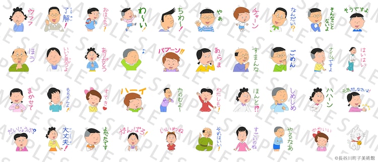 スタンプは全部で40種類。第1弾ではサザエさんから猫のタマなど磯野家の面々にスポットを当てていたが、今回は中島や花沢さん、堀川くんなど磯野家の周囲の人々も登場している。「チャーン」と発するイクラちゃんや、サブちゃんこと三郎が「ちわー!」と挨拶する様子が描き下ろしイラストでスタンプ化された。スタンプは100コインまたは税込250円で購入できる。