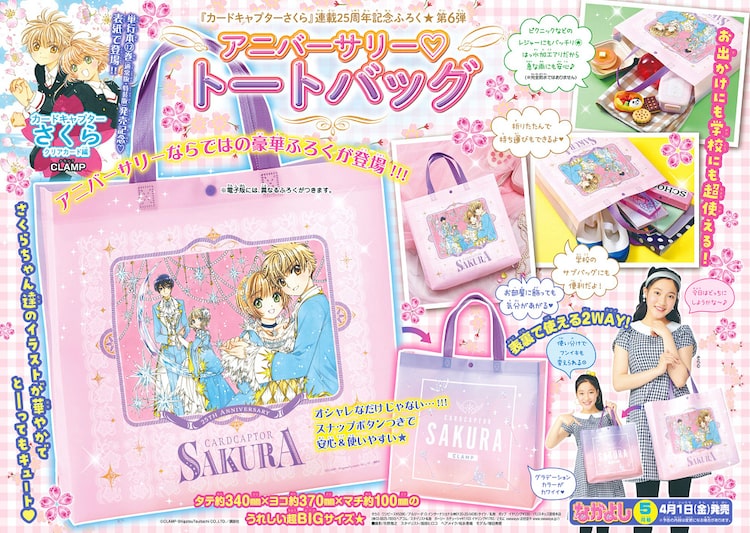 CLAMP「カードキャプターさくら クリアカード編」の付録「アニバーサリー・トートバッグ」が、本日4月1日発売のなかよし5月号(講談社)に付属した。