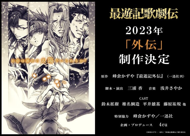 峰倉かずや「最遊記」シリーズを原作とするミュージカル「最遊記歌劇伝」の新作公演として、「最遊記歌劇伝-外伝-」が制作決定。2023年に上演される。