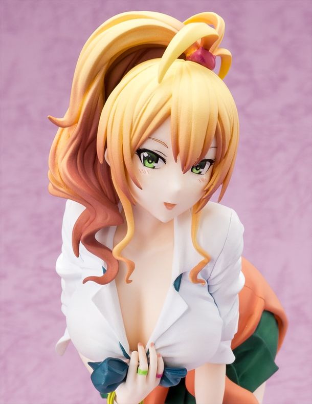 八女ゆかなは見た目こそ派手だが、根は純真でガードも固いという同作のヒロイン。このフィギュアではそんなゆかなが、植野が考案したという挑発的なポーズでお目見え。「マジで見たいなら見せてあげよっか?」と言わんばかりにシャツの胸元を大きく開ける姿を、全高約20.5cmで立体化している。付属する専用台座は鏡面仕様が施されており、フィギュアをさまざまな角度から楽しむことが可能だ。