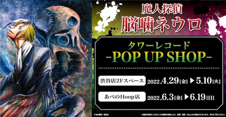 松井優征「魔人探偵脳噛ネウロ」のポップアップショップが、4月29日から東京・タワーレコード渋谷店、6月3日から大阪・タワーレコードあべのHoop店にて開催される。