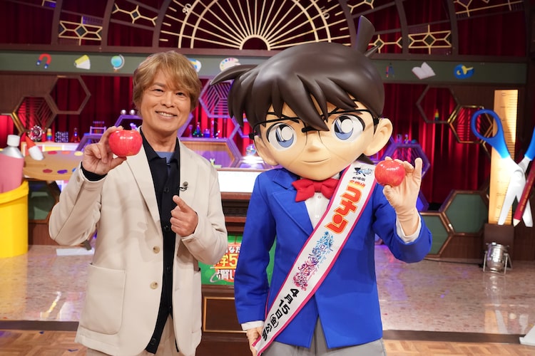 「クイズ!あなたは小学5年生より賢いの?」に出演する古谷徹と江戸川コナン。