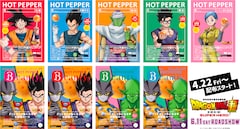 表紙は全9種。「HOT PEPPER」が悟空、ベジータ、ピッコロ、悟飯、ブルマの全5種、「HOT PEPPER Beauty」が背景の異なる悟飯とガンマ1号、ピッコロとガンマ2号の2種ずつ全4種で展開される。また一星球(イーシンチュウ)から七星球(チーシンチュウ)までの7つのドラゴンボールが各ビジュアルごとに描かれており、すべて集めると7つのドラゴンボールを揃えることができる。さらに誌面には、最強の人造人間・ガンマ2号を演じる宮野真守のインタビューを掲載。宮野が新作となる「ドラゴンボール超 スーパーヒーロー」への思いを語る。配布エリアなど詳細は、HOT PEPPERの公式サイトで確認を。