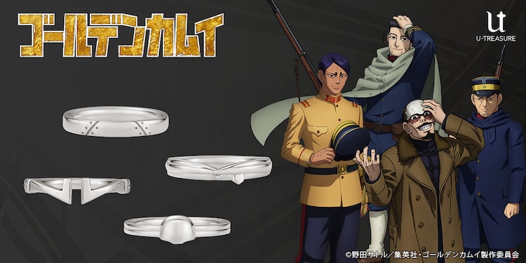 野田サトル原作によるTVアニメ「ゴールデンカムイ」に登場する鶴見篤四郎、 尾形百之助、 月島基、 鯉登音之進をイメージしたリングが、ユートレジャーから発売される。