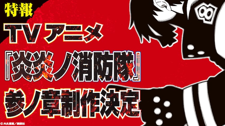 大久保篤原作によるTVアニメ「炎炎ノ消防隊」の第3期にあたる「炎炎ノ消防隊 参ノ章」の制作が決定した。