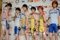 左から御堂筋翔役の林野健志、泉田塔一郎役の河原田巧也、今泉俊輔役の和田雅成、小野田坂道役の醍醐虎汰朗、鳴子章吉役の百瀬朔、葦木場拓斗役の富永勇也。 (c)渡辺航(週刊少年チャンピオン)/弱虫ペダル04製作委員会 (c)渡辺航(週刊少年チャンピオン)/マーベラス、東宝、トムス・エンタテインメント