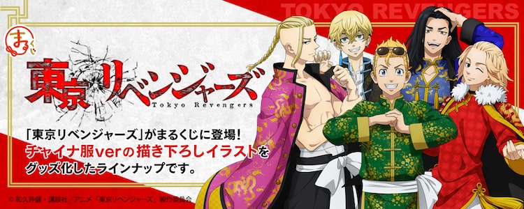 「まるくじ TVアニメ『東京リベンジャーズ』」では、チャイナ服をテーマにタケミチ、マイキー、ドラケン、場地、千冬の描き下ろしイラストを使用した限定グッズが登場。布ポスター、バスタオル、アクリルスタンド、クリアファイルセット、缶バッジ、カードといったアイテムがラインナップされた。