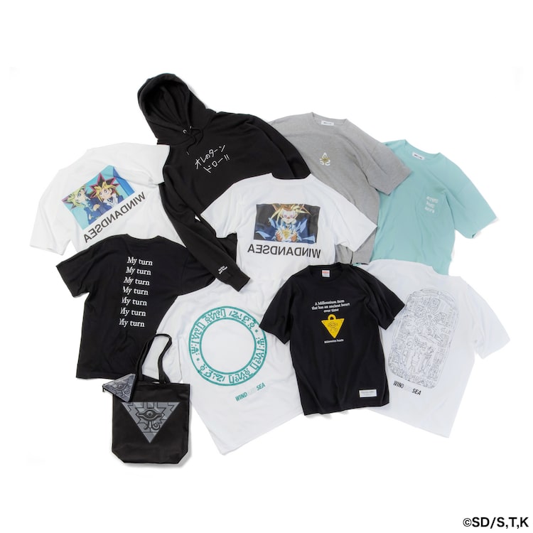 原作の「遊☆戯☆王」連載開始25周年を記念したこのコラボ。「オレのターン ドロー!!」という文字がプリントされたTシャツやフーディ、千年パズルがデザインされたトートバッグとポーチ、アパレルブランド・WIND AND SEAによる、場面カットをレイアウトしたTシャツなどがラインナップされた。コラボアイテムを購入した人の中から抽選で3人には、遊戯の制服をイメージしたジャージがプレゼントされる。WIND AND SEAによるアイテムはKAIBA CORPORATION STOREでも取り扱われ、同サイトでの限定カラーが用意されているほか、購入特典としてオリジナルステッカーが付属。各商品は8月下旬より順次届けられる。