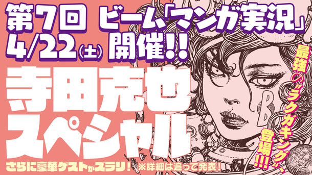 「ビーム マンガ実況!!」第7回では、ラクガキングの愛称で知られる寺田克也の作画講座を実施予定。また番組では朝倉世界一「おれは たーさん」、カネコアツシ「デスコ」をユーザーと一緒に読み、両作者と丸尾末広もゲストで登場する。詳細な視聴方法はニコニコチャンネル「読もう! コミックビーム」で確認を。