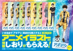 しおりにはアニメ「アオアシ」のイラストを使用。特典は対象店舗で単行本を1冊購入するごとに1枚、進呈される。配布方法は店舗により異なるため、詳細は店頭で確認しよう。なお対象店舗はビッグコミックブロスの公式サイトに掲載されている。