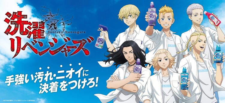 「洗濯リベンジャーズ」は、「東京リベンジャーズ」のストーリーのように、手強い洗濯物の汚れやニオイに何度も諦めずリベンジし、洗濯や家事を頑張る人達の支えになりたいという思いから実施されるもの。「手強い汚れ・ニオイに決着をつけろ!」をキャッチコピーに、描き下ろしイラストを使用した限定パッケージ「トップ スーパーNANOX」「トップ スーパーNANOX ニオイ専用」を限定販売する。描き下ろしイラストには、タケミチやマイキーなど主要キャラクターたちが洗濯物を干している姿を描写。商品にはオリジナルステッカーがランダムで1種が付いてくる。