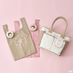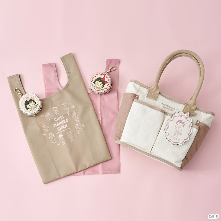 ハンドバッグはキャンバス地で、かわいらしい印象のバイカラー。バッグの側面には、さくらが描くおなじみの動物や、メルヘンの国の仲間たちがデザインされた。またカードが1枚入るバッグチャームも付属している。エコバッグのポーチはキーリング付きで、バッグに付けることも可能。エコバッグを使用しないときは、ポーチに収納することもできる。なお「ちびまる子ちゃん」のアイテムには、さくらが連載初期にグッズ用に描き下ろした秘蔵アートが使用された。
