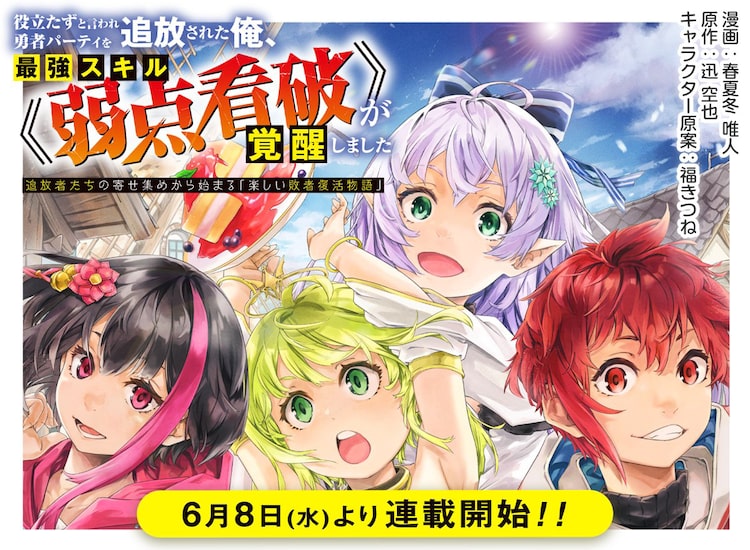 迅空也原作による春夏冬唯人の新連載「役立たずと言われ勇者パーティを追放された俺、最強スキル《弱点看破》が覚醒しました 追放者たちの寄せ集めから始まる『楽しい敗者復活物語』」が、本日6月8日にコミックファイアでスタートした。