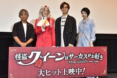 本日封切られた「怪盗クイーンはサーカスがお好き」は、飛行船で世界中を飛びまわり、狙った獲物は必ず盗み出す年齢・性別不詳の怪盗クイーンが、目当ての宝石を謎のサーカス団に横取りされることから動き出す物語。舞台挨拶には大和悠河が自身の演じるクイーンの姿に扮して姿を現し、ジョーカー役の加藤和樹、原作者のはやみねかおる、主題歌を担当したLittle Black Dressも登壇した。