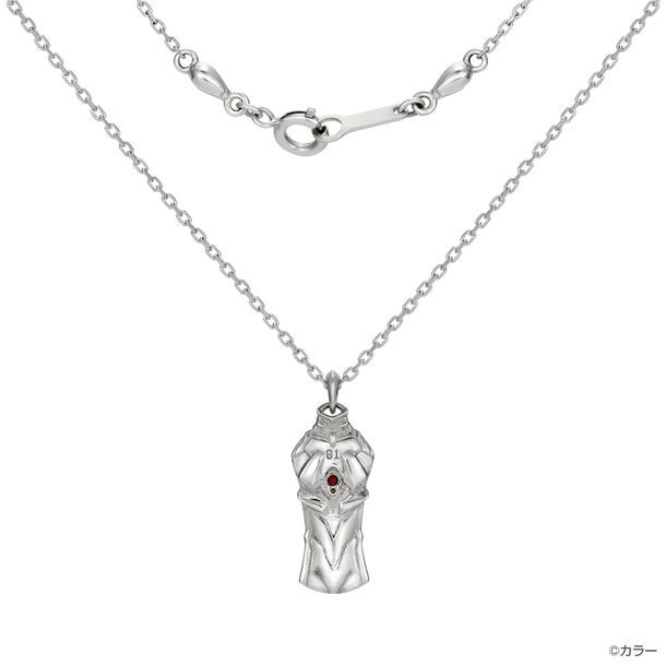 碇シンジ、綾波レイ、式波・アスカ・ラングレー、真希波・マリ・イラストリアス、渚カヲルのプラグスーツをイメージしたネックレスは全7種類。金属の厚みに細やかな強弱をつけることでプラグスーツのボディラインを表現し、胸元には日本の伝統工芸「七宝焼き」による彩色が施された。またネックレスの留め具には、操縦する際に頭に着けるインターフェイスがさり気なくデザインされ、繊細で深みのあるアイテムに仕上がった。