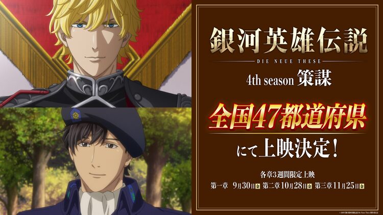 アニメ「銀河英雄伝説 Die Neue These」のフォースシーズン「策謀」が、前シーズンから上映劇場を拡大した全国47都道府県70劇場で上映されると明らかになった。