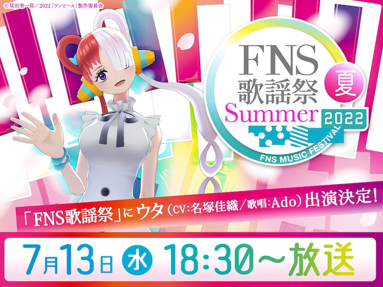 尾田栄一郎原作による映画「ONE PIECE FILM RED」の登場キャラクター・ウタが、7月13日18時30分から放送されるフジテレビ系の音楽特番「2022FNS歌謡祭 夏」に出演する。