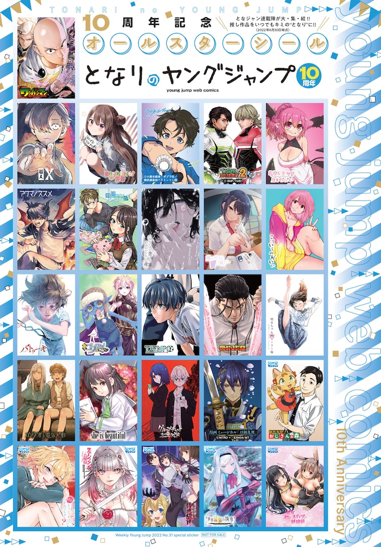 本日6月30日に発売された週刊ヤングジャンプ31号(集英社)には、となりのヤングジャンプの10周年を記念したシールが付属している。