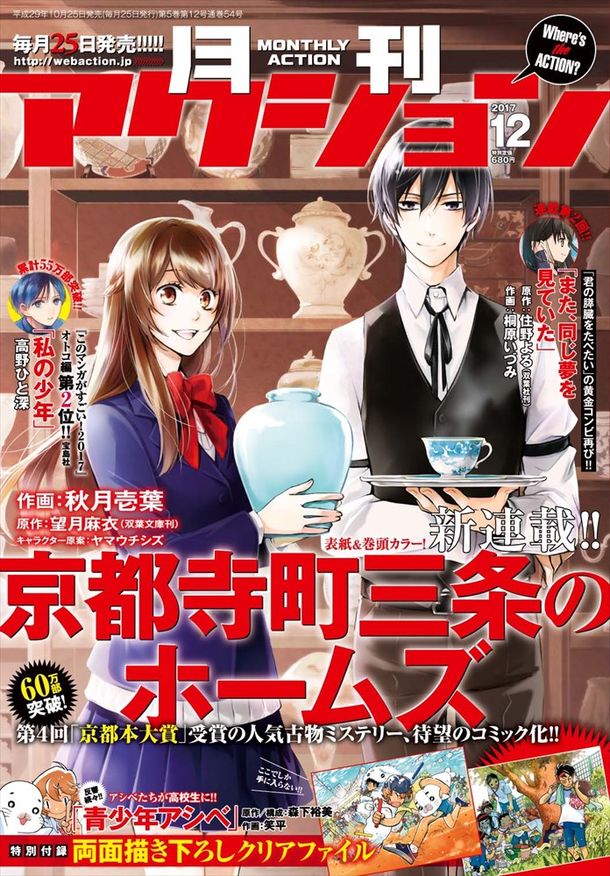 望月麻衣原作による秋月壱葉の新連載「京都寺町三条のホームズ」が、本日10月25日発売の月刊アクション12月号(双葉社)でスタートした。