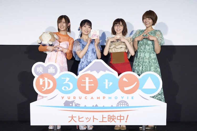 あfろ原作による映画「ゆるキャン△」の公開御礼舞台挨拶が本日7月10日に東京・丸の内ピカデリーで開催され、志摩リン役の東山奈央、大垣千明役の原紗友里、犬山あおい役の豊崎愛生、斉藤恵那役の高橋李依が登壇した。本記事ではその模様をネタバレありでレポートする。