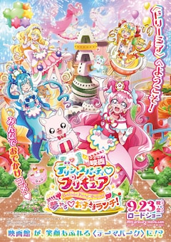 映画の舞台は、ある日突然おいしーなタウンに現れた“お子さまランチのテーマパーク”・ドリーミア。おむすびのタワーやパンの観覧車、ラーメンのコースターなど食べ物をモチーフにしたアトラクションがいっぱいのドリーミアを楽しむゆいたちだったが、マリちゃんがぬいぐるみになってしまうなど園内で異変が起こり……。予告編は「ゆいみたいなヒーローになりたい」と願うコメコメの活躍を予感させる内容。またポスターにはキュアプレシャスと祈るようにして手を取り合っている謎の少女の姿も収められている。