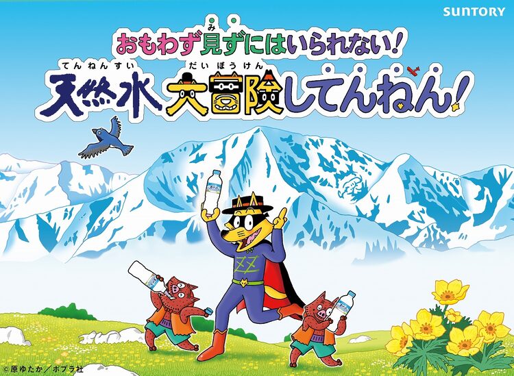 そのほか「天然水大冒険してんねん!」の特設サイトでは、ゾロリワールド全開の親子向けコンテンツを用意。「ものしりクロスワードパズル」や「天才証明書」、ゾロリといっしょに脱出を目指す「天然水の大冒険迷路」がダウンロードできる。さらに原作者・原ゆたかが自然の仕組みを描き下ろした「天然水の冒険絵巻」も展開。7月末にリリース予定のアプリ「かいけつゾロリ バーチャルゾロリ城」内にも「天然水の冒険絵巻」がミニゲームとなって登場する予定だ。