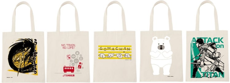 藤田和日郎「うしおととら」、森下裕美「少年アシベ」、諫山創「進撃の巨人」のエコバッグが発売されている。
