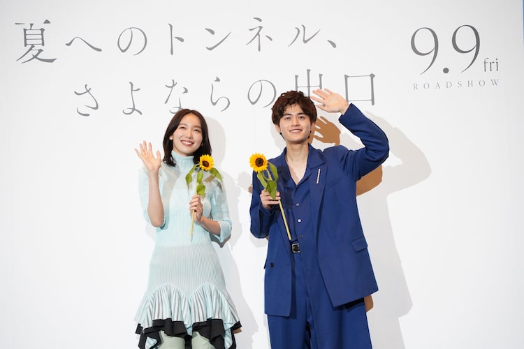 最後に鈴鹿は「人生を歩んでいく道の中で、壁にぶち当たって、どう乗り越えていこうと考えている2人(カオルとあんず)がいて。1人ひとりに寄り添ってくれる物語なので、皆さんの中でこの物語が続いていくというか……皆さんが3人目の主人公」と語りかける。そして「ここからは皆さんとの”共同戦線”なので、よろしくお願いします」と劇中のセリフを用いて応援を呼びかけた。「夏へのトンネル、さよならの出口」は9月9日に全国で公開される。