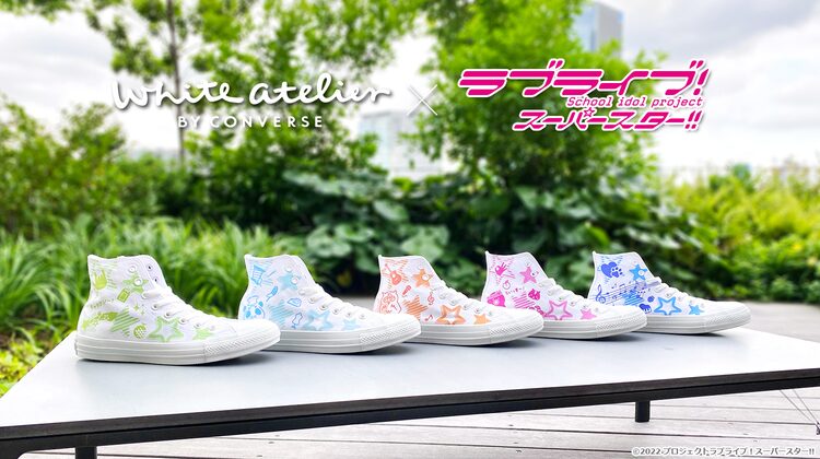 TVアニメ「ラブライブ!スーパースター!!」とコンバースのシューズ直営店・White atelier BY CONVERSEのコラボシューズ5種が、9月4日23時59分まで通販サイト・premiumstore.jpで予約販売されている。