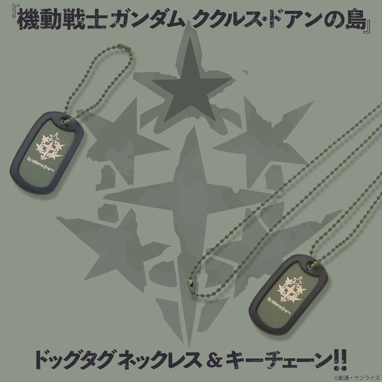 劇場アニメ「機動戦士ガンダム ククルス・ドアンの島」をモチーフにした「ドッグタグネックレス&キーチェーン」が、バンダイより発売される。