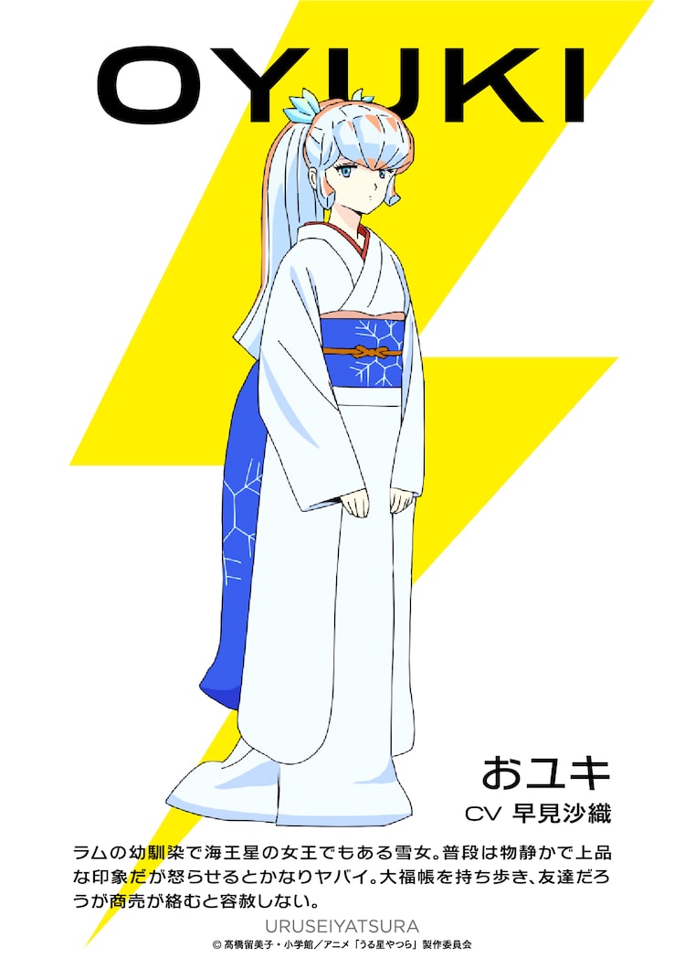10月よりフジテレビ「ノイタミナ」枠ほかで放送される完全新作のアニメ「うる星やつら」。早見演じるおユキは、ラムの幼なじみで海王星の女王でもある雪女のキャラクターだ。普段は物静かで上品な印象だが、怒らせると怖いという一面も。また普段から大福帳を持ち歩くなど金銭管理はしっかりしているが、商売が絡むと友達だろうが容赦しない。「うる星やつら」を「昔から自分の中に存在していた作品」だという早見は、「会話の中でみせるおユキさんの細やかな表情を拾いつつ、楽しんで収録できればと思っています」とコメントを寄せた。