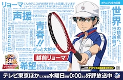 7月よりテレビ東京ほかで放送中の「新テニスの王子様 U-17 WORLD CUP」。広告には7月13日から21日までの期間に募集していたリョーマ、手塚、大石、不二、跡部、亜久津、幸村、真田、仁王、ブン太、切原、白石、銀、金太郎、木手への応援メッセージが使われている。