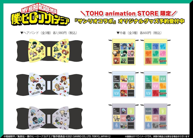 堀越耕平原作によるTVアニメ「僕のヒーローアカデミア」とサンリオキャラクターズのコラボ第2弾イラストを使った新作グッズが、通販サイト・TOHO animation STOREで販売されている。
